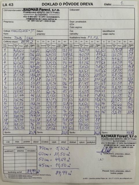 | Denominazione sociale : | RADMAR Forest, s.r.o. |